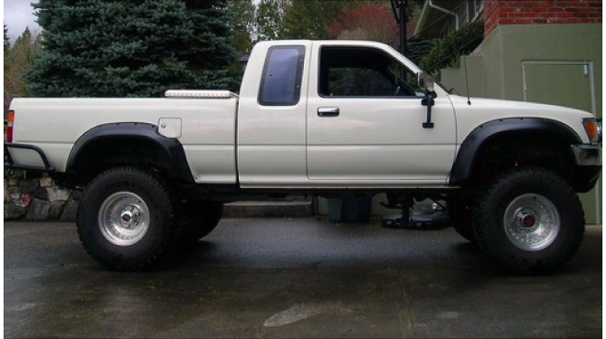 Toyota Hilux 88 - 97 Cut-Out Fender Flare - Front Pair Adds up to 3.00 in. of tire coverage from debris Sheet metal removal maximizes wheel articulation OEM matte black finish is easy to paint 100% UV protected Dura-Flex- no chalking - Made in the USA